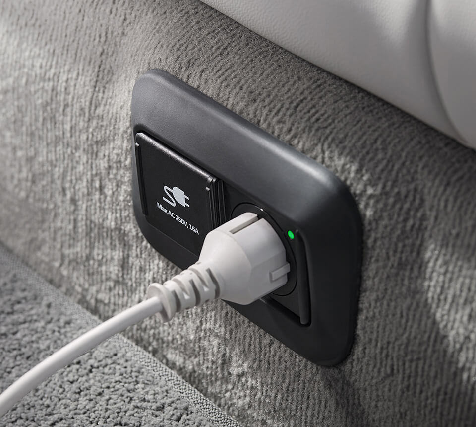 Наслаждайтесь комфортом премиум-класса благодаря двум полностью откидывающимся удобным передним сиденьям. Откиньтесь назад, чтобы отдохнуть, пока идет зарядка, одним нажатием кнопки.