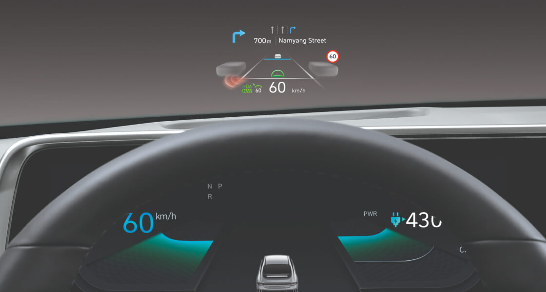 Улучшенная панель приборов с индикацией на ветровом стекле поможет вам безопасно передвигаться по миру, проецируя виртуальную информацию, такую как направления или предупреждения, прямо на дорогу.